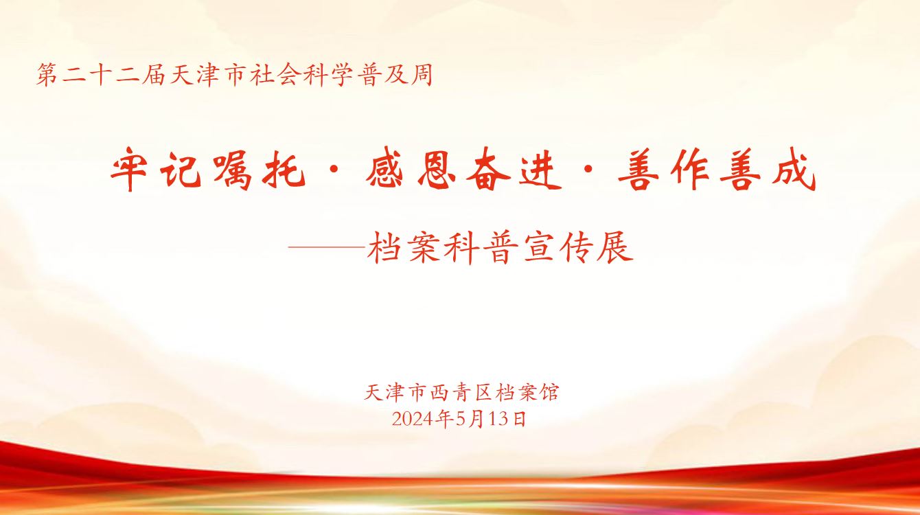 为充分发挥档案馆社科普及资源优势,在第二十二届天津市社会科学普及周活动期间,西青区档案馆围绕《中华人民共和国档案法实施条例》、档案前世今生、世界档案之最等内容举办档案科普宣传展,让广大人民群众认识档案、走进档案、了解档案。